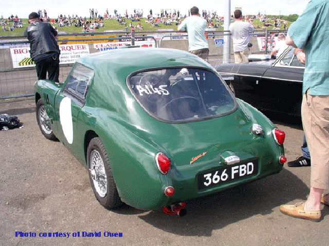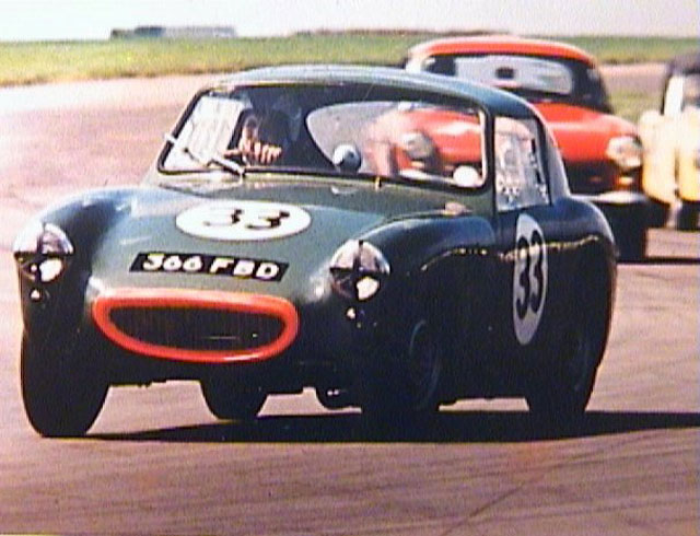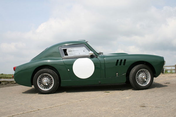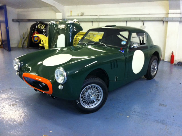 Built from a bare Sprite Mk 1 shell in 1963 by Brian Myers and his brother Ken, a Berlinettafastback alloy roof was made by a former Aston Martin employee, and a fibreglass Sebring bonnet fitted. Called ‘Lumbertubs Sprite’ after the lane in which the Myers brothers lived, in Northampton, it was built to take advantage of the regulations permitting homologated Sprite variants. Fitted with a 997cc engine it was raced by Brian Myers and Peter Webster as a Sprite GT, with Ken Myers looking after the mechanicals. In 1965 ownership was passed to Peter Webster, who fitted a 1650cc Ford and used it with some success in sprints/hillclimbs. In 1967 the engine was changed for a 1498cc Cosworth, developing around 130 – 140 bhp, with a Cortina GT gearbox. It is known to have won the 1600cc class at the St. John Horsfall meeting at Silverstone on 24th June 1967 with Peter driving. Other modifications at this time included wide steel wheels, rear telescopic dampers, bonnet bulge, and dark green metallic paint. Nothing is known of ‘Lumbertubs’ after 1971, other than that it was owned by Anthony Smart, and probably used as a road car until 1974. The car is currently being used for occasional sprints but David is hoping to take part in some historic rallies or tours.