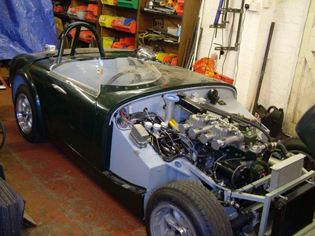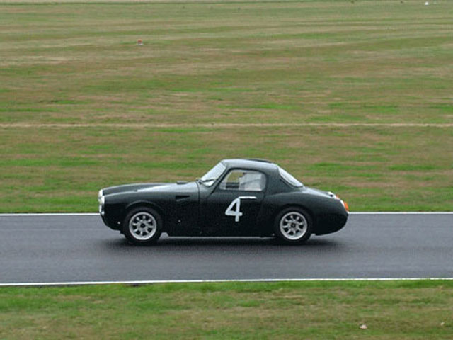 Jack initially ran the car in a few rallies and other modest events before deciding to go club racing. The car began as a standard-bodied Sebring and is pictured in “Spritely Years” fitted with a supercharger. A fibreglass Sebring bonnet was the first major modification, followed later by an alloy hardtop similar to those of Sprinzel’s Williams & Pritchard coupés. Unable to afford W & P’s prices, Jack obtained front, rear and side screens from Paul Hawkins and trotted off to Peel Coachworks for them to create a similar top. Jack made his own lightweight doors by stripping off the steel outer skins, and cladding them in aluminium. He bent the shape “over his knee” and was naturally proud to show me that the driver’s door he made remains on the car today. Later, when funds allowed, Jack went back to Peel’s and asked them to make him an alloy rear end. While there he noticed that they had made one for Douglas Wilson-Spratt which incorporated Bentley rear light units, so he asked for his to be fitted with these as well.