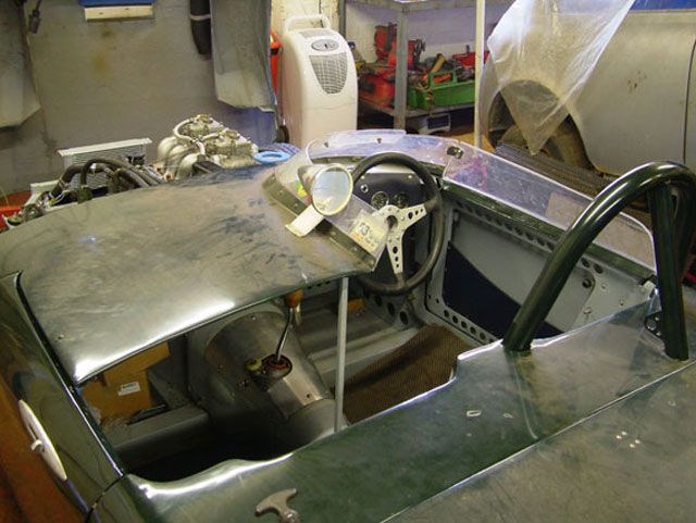Then the question was whether to rebuild it as the Coupé car raced in the early 60’s or the open, Elan-equipped car of the later period. Jack eventually decided to do both! He had enough parts but only one bodyshell and that needed a lot of work. Brian Wheeler built a new shell for the hardtop car which then had a new aluminium rear plus the original hardtop and a replacement fibreglass bonnet. This car is fitted with a wet-sump motor with single 45 Weber and the MGB overdrive gearbox, while the open car has the 8 port head, dry sump motor and the 5-speed box. At the time of writing this latter car is with Brian Wheeler for a replacement aluminium bonnet to be fabricated.